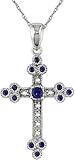 10K White Gold .035 ctw Diamond and Sapphire Cross Pendant