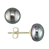 14K Yellow Gold 7-7.5mm Black Cultured Freshwater Pearl Earrings