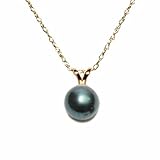 An iridescent silvery-black freshwater cultured pearl does a solo act in this elegant pendant. The 7.6-8mm AA pearl appointed with a V-shaped bail and suspended from a delicate 18-inch rope chain. Both the bail and chain are made from bright and durable 14 karat yellow gold. Simple and sophisticated, this pendant is a beautiful addition to your collection.