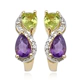 18k Gold Plated Sterling Silver Amethyst, Peridot and Diamond Accent J-Hoop Earrings