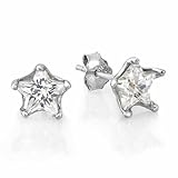 APRIL Birthstone Clear White Simulated Star Cut Diamond Cubic Zirconia Sterling Silver 6 mm Stud Earrings