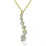 This designer inspired pendant necklace is a slammin' combination of solid .925 sterling silver and smooth 14-karat gold vermeil. Paying respect to the Love Journey motif, this sexy piece is iced out with a graduated row of 7 dazzlin' round cut diamond CZs that are meant to symbolize how you and your boo's love gets stronger every day. With its 16 inch length, this bangin' pendant has a sweet wearing feel. A lobster claw clasp makes sure you'll still look fab without worrying about it fallin' of