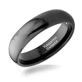 This black tungsten wedding band is an edgy charismatic alternative to the traditional wedding band. This 6mm tungsten wedding band has an incredible high shine and due to the materials used to make this piece of jewelry, it will glimmer for years to come. This black tungsten wedding band is made from tungsten carbide which is tarnish resistant and extremely strong. These tungsten carbide rings for men are an excellent choice as a wedding band to show your devotion to your loved one. Order yours