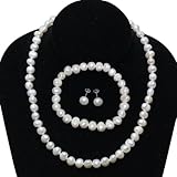 Freshwater White Pearl Sterling Silver Necklace Earrings Bracelet Set