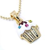 Here is a cute gold plated mini cupcake crystal pendant necklace. Pendant is flat. Add something yummy to your style with this piece! Pendant comes on an 16" long gold ball chain with a 2" extension. Your necklace will come to you in a foil gift box perfect for gift giving. Box may be a different color than the one shown. Lead Compliant.