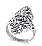LWRS046 .925 Sterling Silver 28mm Design Floral Filigree Flower Polished Finished 4mm Wide Band Ring Size 5, 6, 7, 8, 9, 10