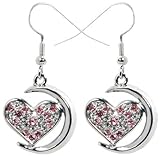 Moon Heart Earrings - Collectible Jewelry Accessory Dangle Studs Jewel Details: