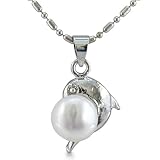 Playful Dolphin Freshwater Pearl Necklace 18-Inch Chain