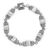 Here is a beautiful silvertone mother of pearl magenetic bracelet. It has gorgeous mother of pearl square pieces accented with silver decorative castings that gives it an antique-like style! This incredible piece will fit up to an 8" wrist comfortably. A perfect item for gift giving or for yourself. Bracelet comes to you in a foil gift box though may be a different box color than the one shown.