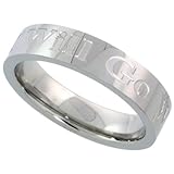 This Quality Stainless Steel Band is made of Low Nickel 316L Hypoallergenic Surgical Steel, and is no different than the ones you can pay .00 to 0.00 for. It's 5/16" (8mm) wide, and is rounded inside for a very Comfortable Fit. Sizes are available from 5 to 9. An Inspirational Verse from Solomon's Song of Songs is engraved around the ring. In most practices, Song of Solomon is construed as a Figurative Representation of the relationship of God and Israel as Husband and Wife.