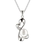 Sterling Silver 2 Heart Pendant with Freshwater Cultured Pearl, 16+2"