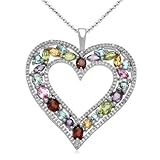 A heartfelt display of colorful gemstones, the Sterling Silver and Round Multi-Gemstone Diamond Heart Pendant Necklace will become a loved piece in her jewelry box. Displayed at the bottom of an 18-inch rolo chain is a classic 1.35-inch by 1.21-inch pendant lined in white diamonds. The center of the pendant is filled with created ruby, amethyst, peridot, citrine, pink sapphire and blue topaz stones granting the pendant tremendous versatility in wear with its multi-color display.