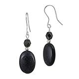 The sleek look of the Sterling Silver Blue Genuine Stone Drop French Wire Earrings create a graphic statement against the ears. Each french-wire earring back supports a bold oval-shaped dark blue stone with a matte finish but speckled by metallics that add sparkle. The dark blue stone is accented by a faceted shape above it with the same color and finish. Their solid finish makes it a casual pair for daytime wear, yet bold color allows it to make a statement in the evening.