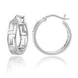 Sterling Silver Tarnish-Free Greek Key Small Cut-Out Hoop Earrings (0.8" Diameter)