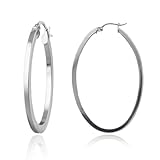 These modern oval hoop earrings are fashioned in tarnish-free sterling silver for an enduring color and shine. The large 45mm hoops have squared edges and a hollow tube design that makes them comfortably lightweight. A beautiful accent for everyday, they fasten with hinged snap posts.