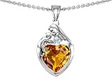 2.10 cttw 14k white Gold Plated Sterling Silver Loving Mother with Child Family Pendant with Genuine Heart Shape Citrine - Gold Plated Silver
