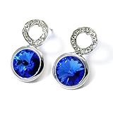 Here is a gorgeous pair of silvertone sapphire Swarovski link post earrings. These earrings measure about 7/8" and have a clear crystal open circle and a shimmering 1/2" sapphire Swarovski crystal set in a smooth bezel. A great item for gift giving or for yourself. Earrings come to you in a foil gift box though may be a different box color than the one shown.